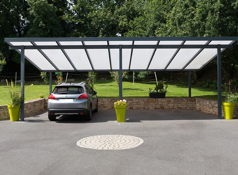 Selon les dimensions choisies, il pourra abriter un ou deux véhicules. Il est également possible d’y associer un espace fermé, comme abris de jardin, afin de grouper les espaces de stockage dans une même zone.